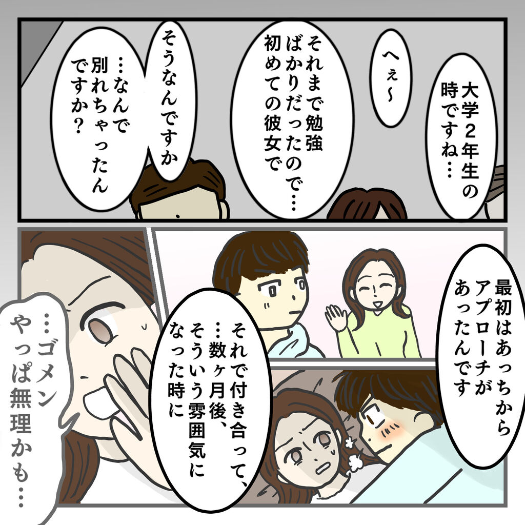札幌男子 マッチングアプリで恋活してみたら⑮ 2022年06月24日 20:15 今回のお話のサクラサイドです🌸 ↓↓こちらもお読みいただくとより楽しめるかと思います♪ もちろん本編を先に読んでもok! 後藤さんの元カノは「蛙化現象」になったみたいです🐸蛙化現象…好きだった男性が振り向いてくれた瞬間に、相手のことを「気持ち悪い」と感じてしまうような現象後藤さんからすると、そんなの知らんがなーって感じかもしれないけどね…💔読んでいただきありがとうございました!次回は告白編です💐後藤さん編もあと3〜4話で終了予定です✨ 「札幌男子 アプリ恋活」カテゴリの最新記事 < 前の記事次の記事 > コメント コメント一覧 (2) 1. カエル 2022年06月27日 07:51 蛙化は、結果だけ説明されても不十分。 その根拠は、 元々自分に自信がなかったり自分の事が嫌いだった人が、誰かのことを好きになって両思いになった時、 こんな自信のない自分の事を好きになってくれる訳がない。だから気持ち悪く感じる現象です。 それが分かれば解決方法も自ずと解ります。 お互いの事信じられる様になるまでゆっくり進んだら良いです。 0 ハルタ がしました 2. ハルタ 2022年06月27日 14:19 >>1 カエルさん 説明不足で申し訳ないです😭💦 わかりやすくありがとうございます✨ そうですね🙂💕ゆっくり進めたら良いですよね🙏🏻💐✨ コメントありがとうございました😊🌸 0 ハルタ がしました コメントフォーム 名前 コメント 記事の評価 リセット リセット 顔 星 情報を記憶 コメントを投稿する